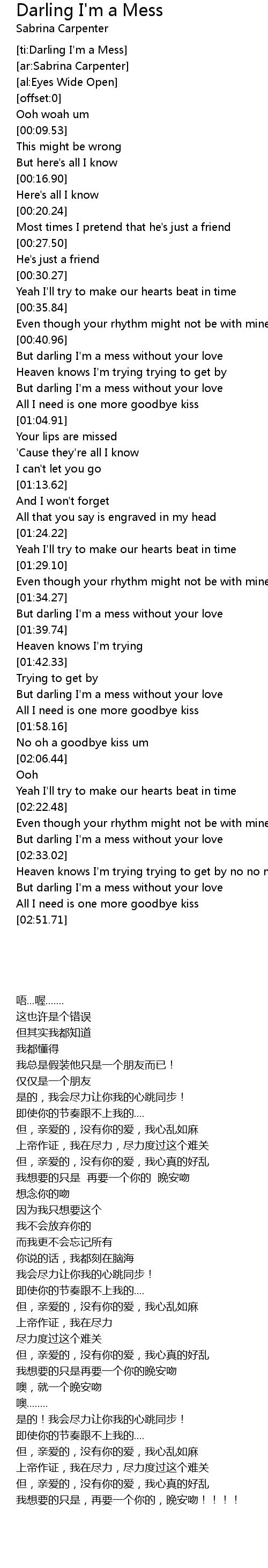 [02:39.08] 但,亲爱的,没有你的爱,我心真的好乱