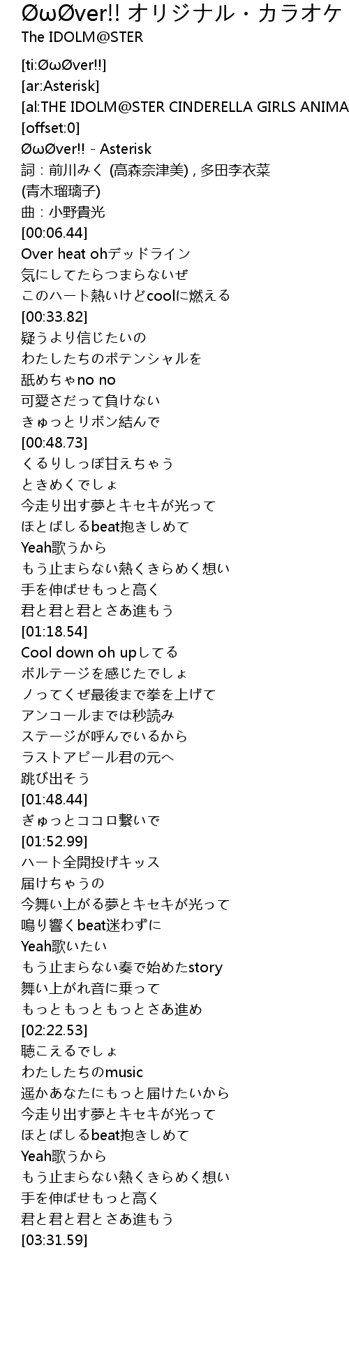 | 歌曲 | ØωØver!! オリジナル・カラオケ |