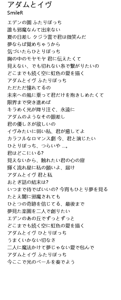 | [03:23.74] | アダムとイヴ ひとりぼっち |
