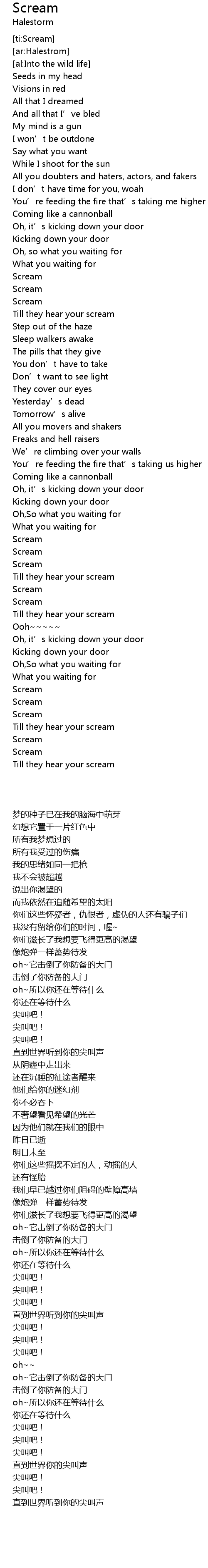 | [03:04.71] | 直到世界听到你的尖叫声 |