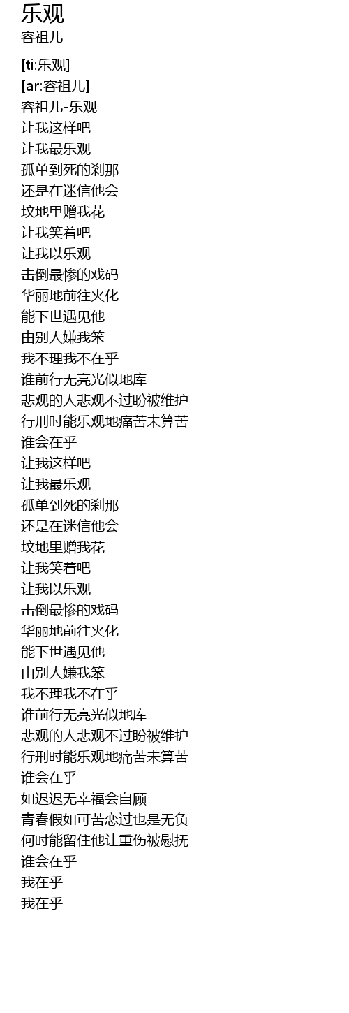 | [01:58.987] | ràng wǒ yǐ lè guān |
