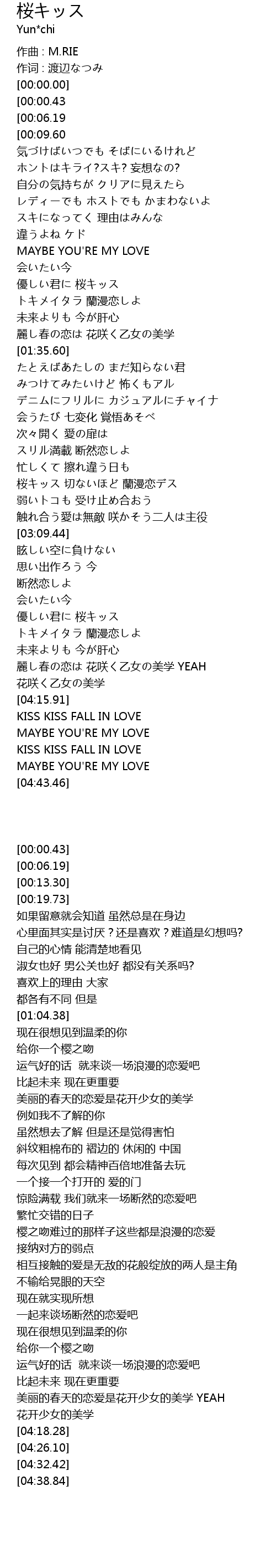 | [00:13.30][00:00.43] | KISS KISS FALL IN LOVE |