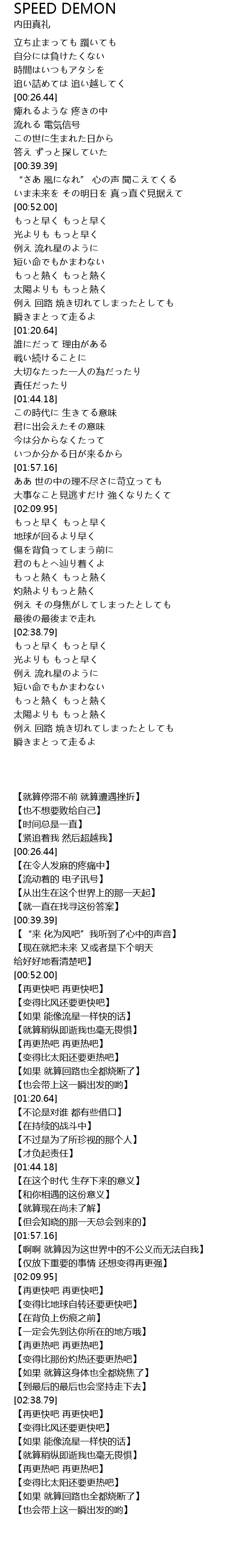 | 歌曲 | SPEED DEMON |