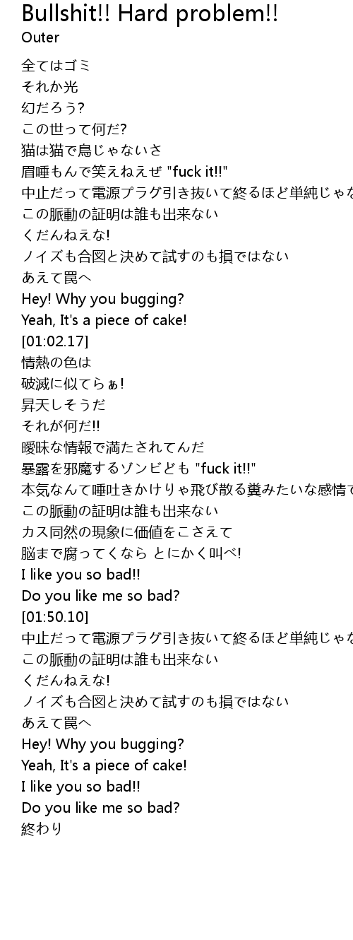 | 歌曲 | Bullshit!! Hard problem!! |