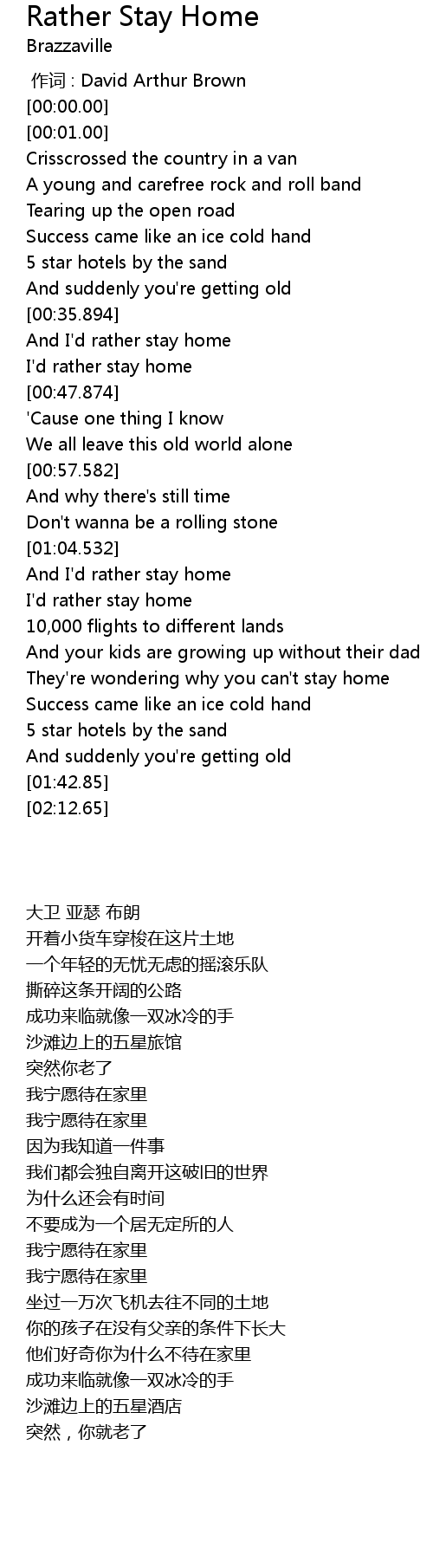 | [00:44.55] | I' d rather stay home |