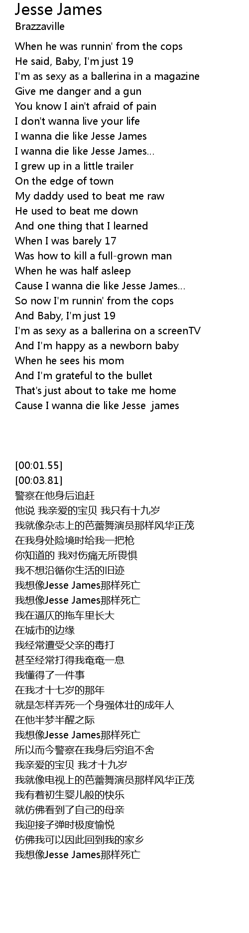 | [01:41.77] | 我想像Jesse James那样死亡 |