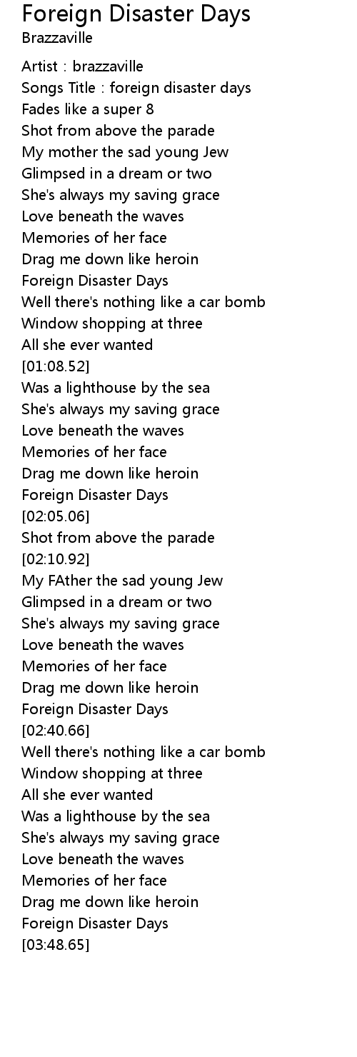 | [00:47.29] | Foreign Disaster Days |