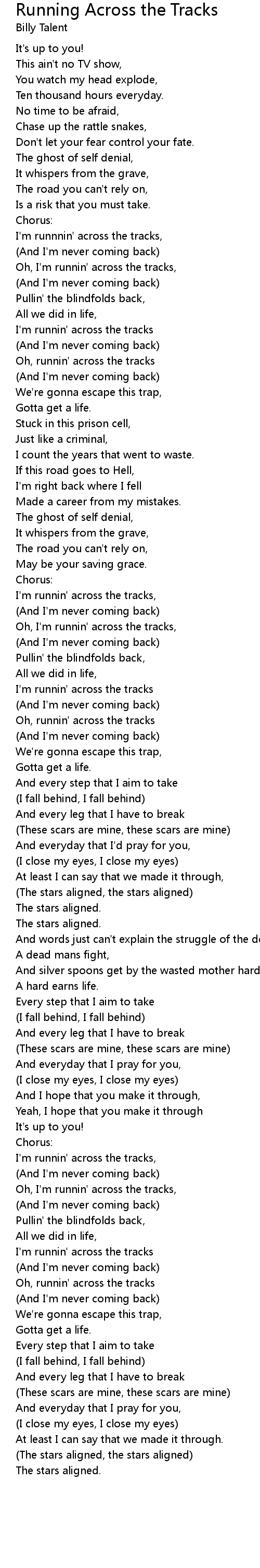 I'm runnin' across the tracks, |