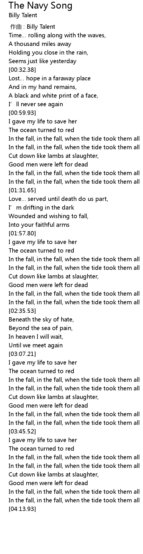 | 歌曲 | The Navy Song |