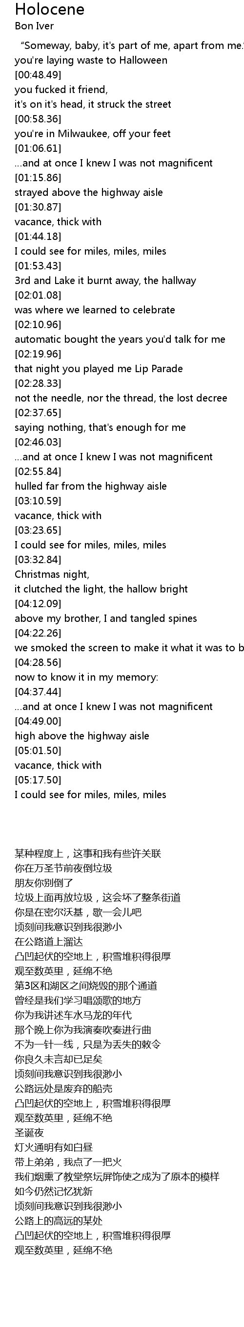 | [01:58.24] | 3rd and Lake it burnt away, the hallway |