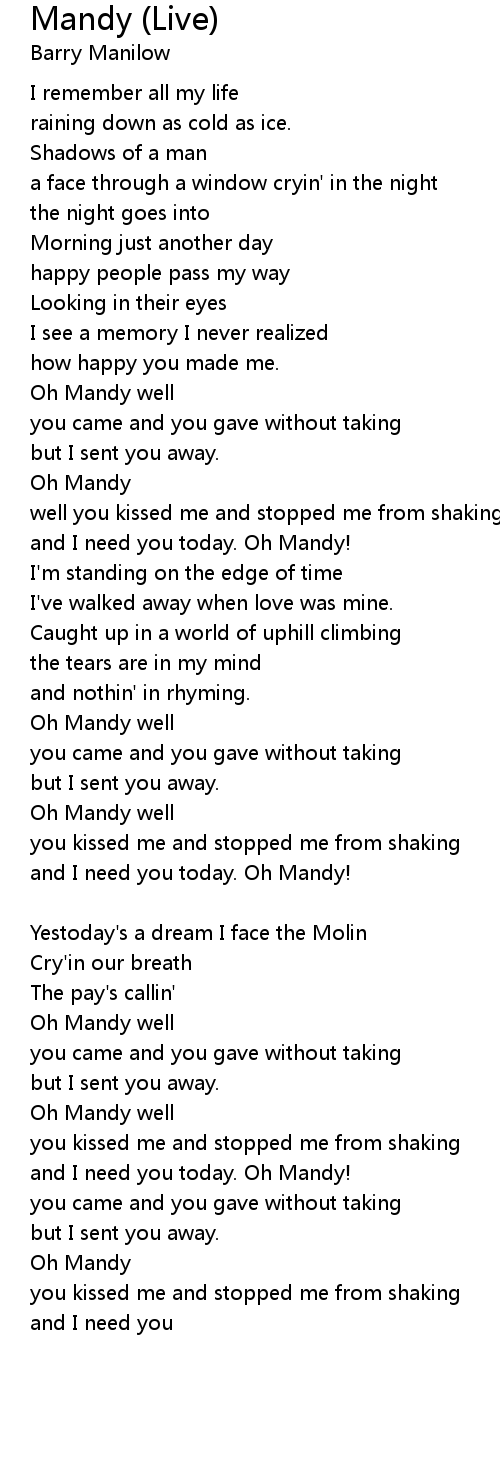 and I need you today. Oh Mandy! |