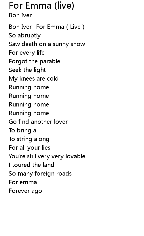 | [00:00.514] | Bon Iver -For Emma(Live) |