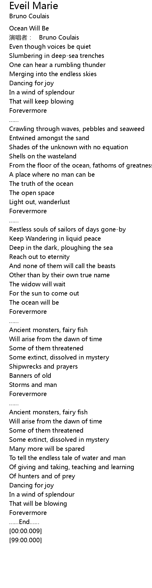 | [02:03.23] | The ocean will be |