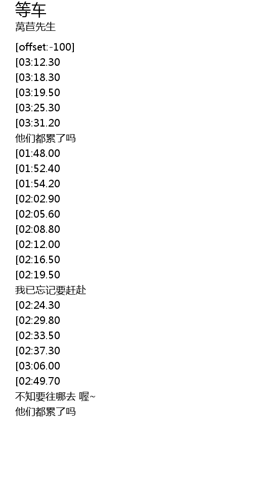 | [00:21.00][03:19.50] | 他们等待公共汽车 |