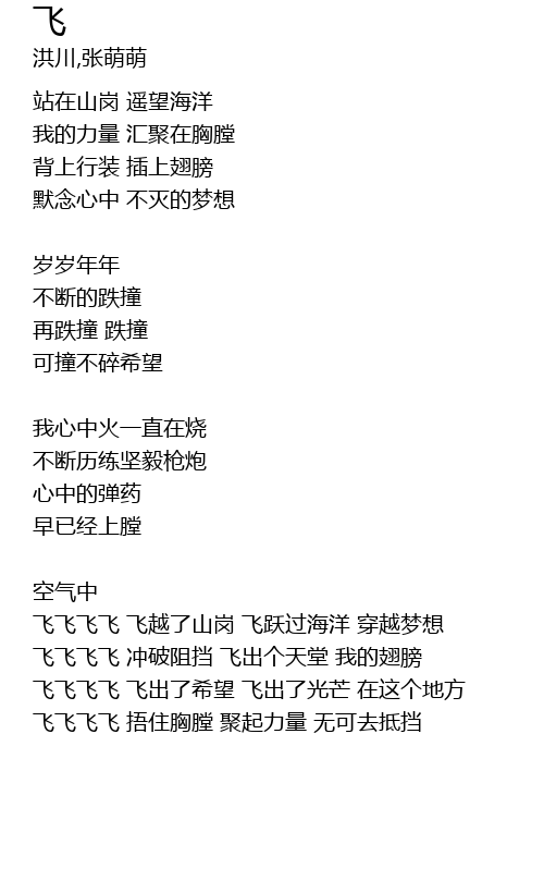 | 飞飞飞飞 飞出了希望 飞出了光芒 在这个地方 | |