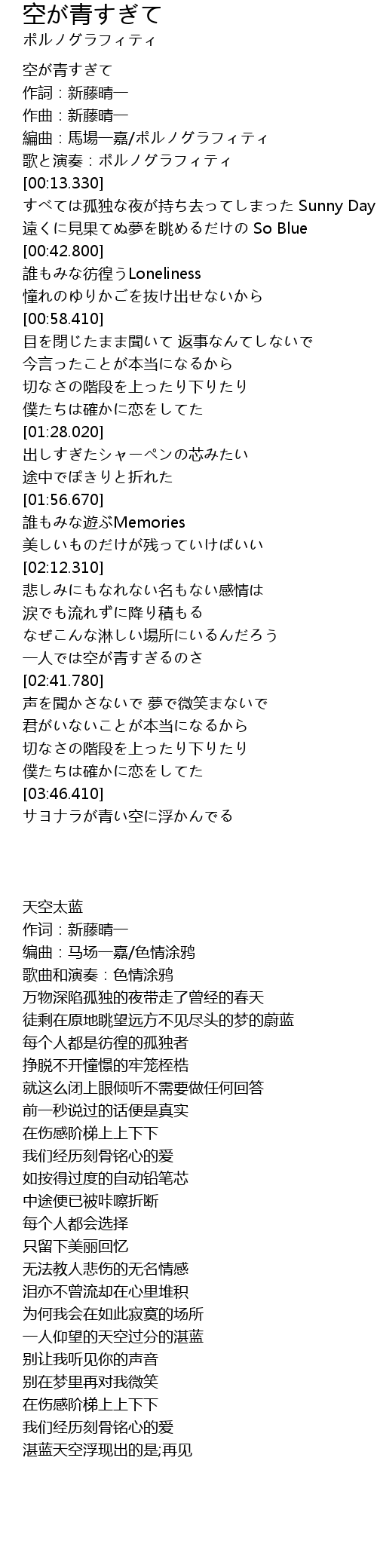 | [02:35.500] | 一人仰望的天空过分的湛蓝 |