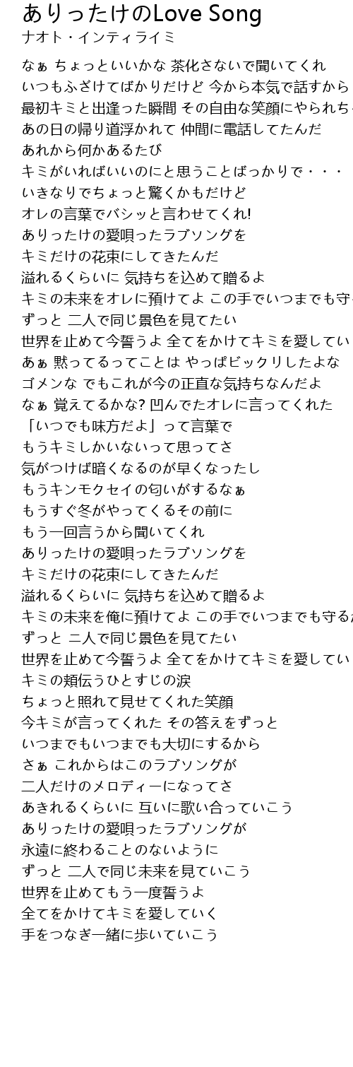 | ありったけの愛唄ったラブソングが 永遠に終わることのないように | |
