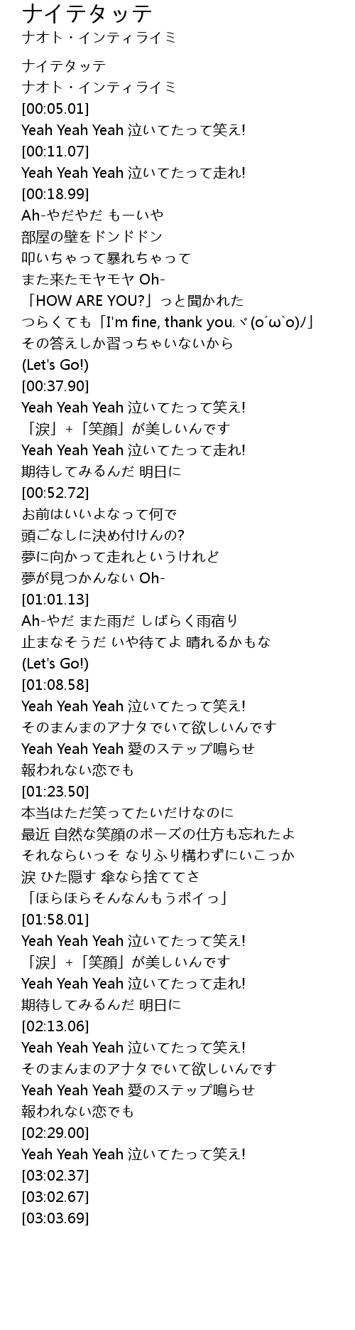 | [00:01.03] | ナオト・インティライミ |