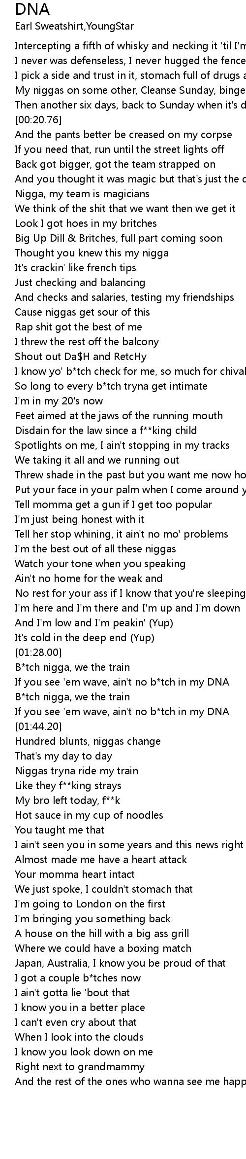 If you see 'em wave, ain't no b*tch in my DNA |