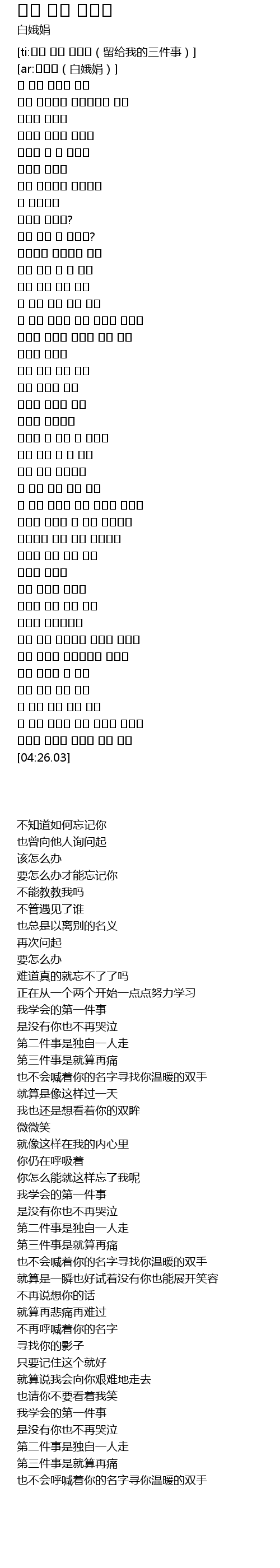 | [ti:내게 남은 세가지(留给我的三件事)] | |