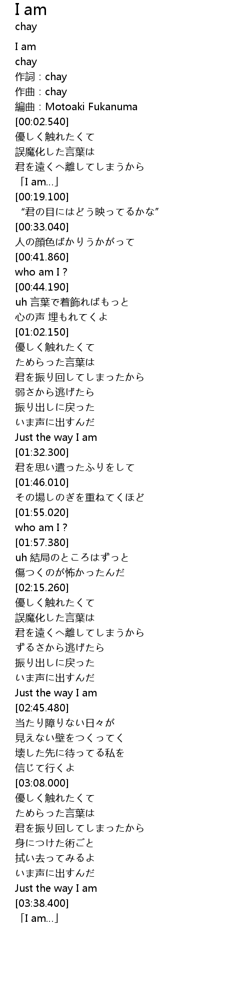 | [00:00.000] | I am |