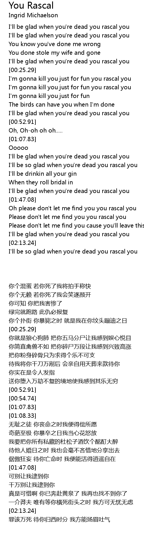 I'll be glad when you're dead you rascal you |