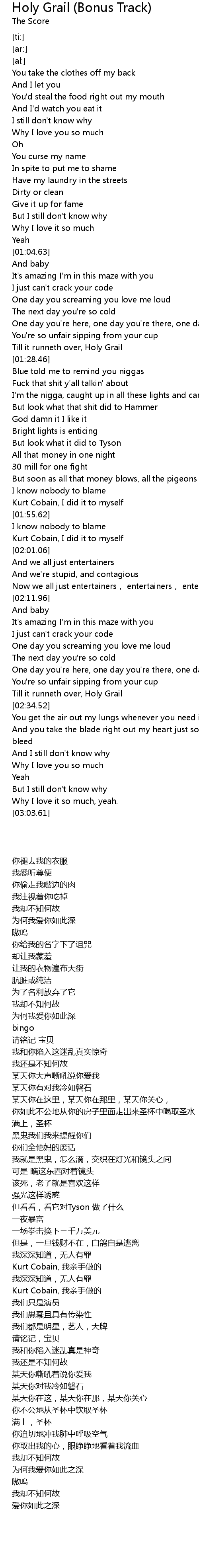 | [02:27.89] | 你不公地从圣杯中饮取圣杯 |