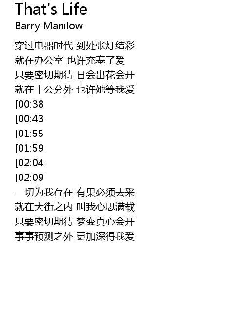 | 歌曲 | That's Life |