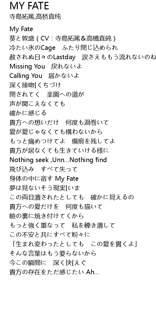 | [00:01] | My Fate |