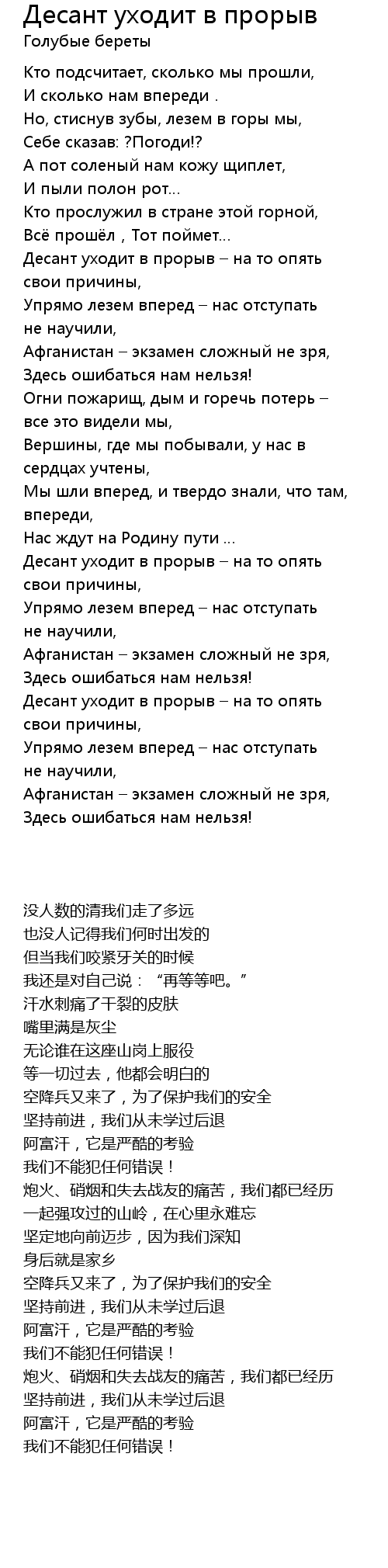 | [00:38.88] | Десант уходит в прорыв – на то опять свои причины, |