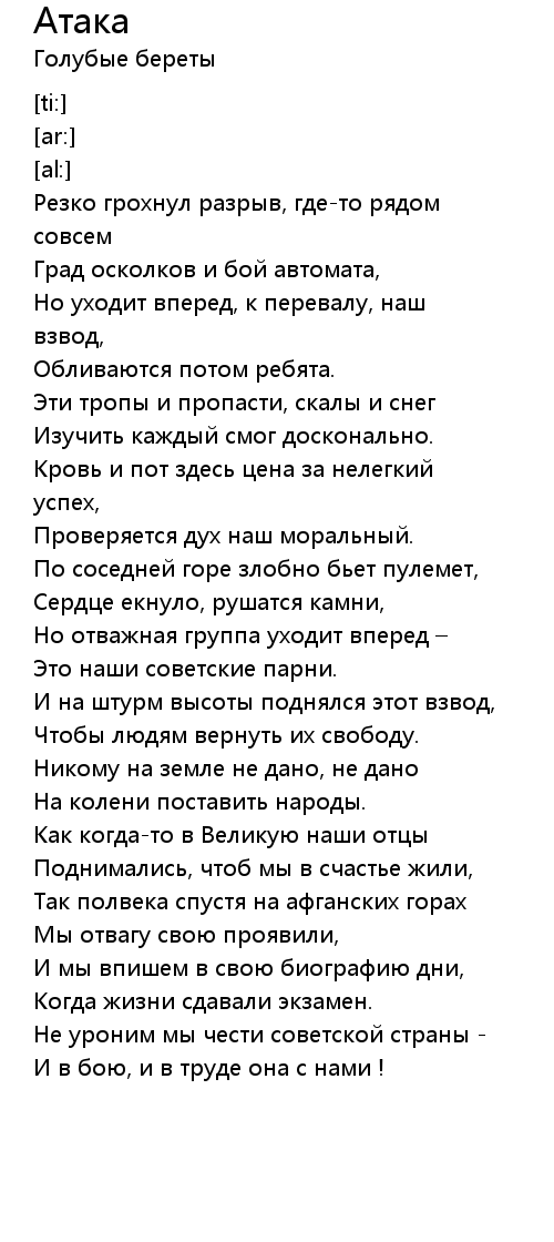 Атака 歌词