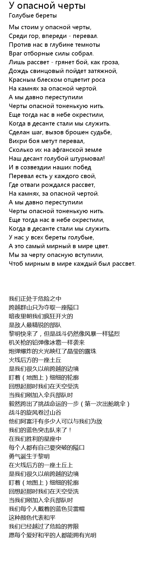 | 歌曲 | У опасной черты |