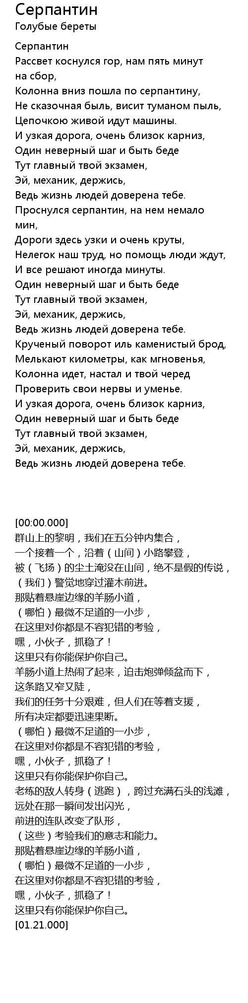 | [00:22.500] | Колонна вниз пошла по серпантину, |
