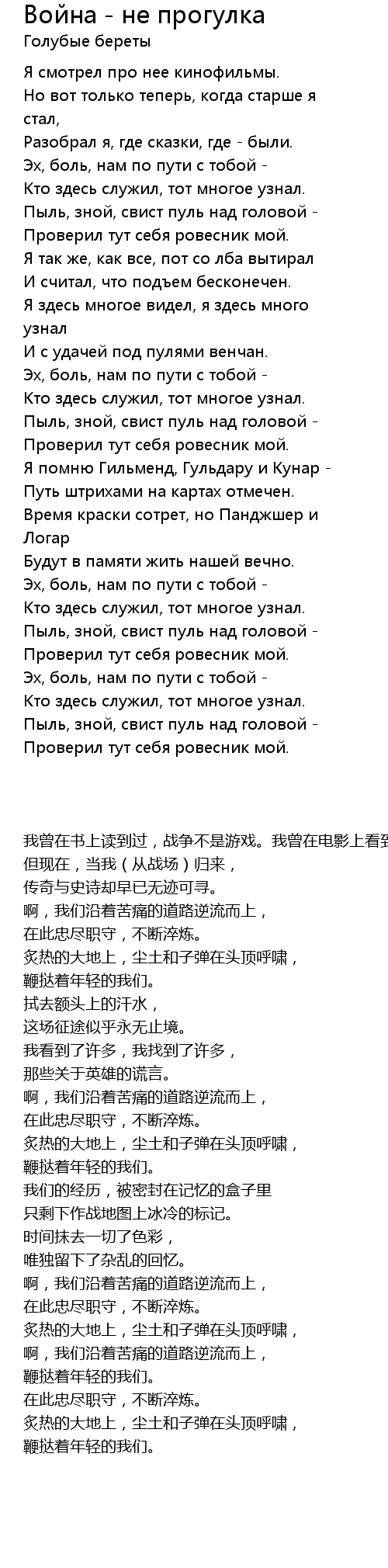 | 歌曲 | Война - не прогулка |