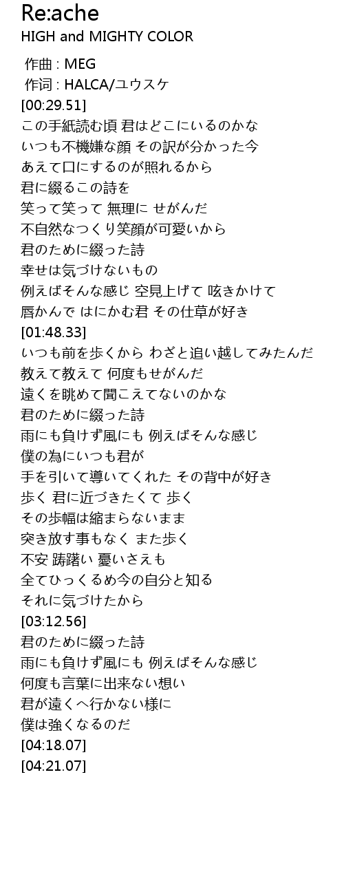 | [00:31.51] | この手紙読む頃 君はどこにいるのかな |