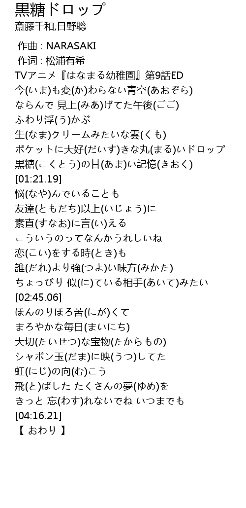 | [00:04.22] | TVアニメ『はなまる幼稚園』第9話ED |
