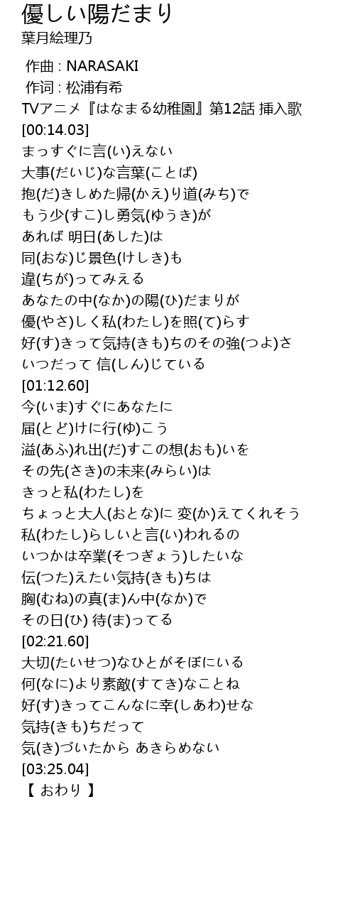 | [00:04.03] | TVアニメ『はなまる幼稚園』第12話 挿入歌 |