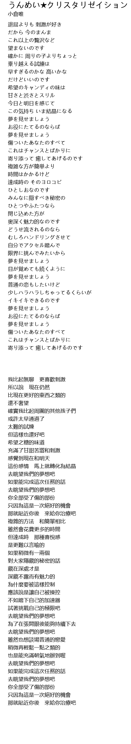 | 歌曲 | うんめい★クリスタリゼイション (Instrumental) |