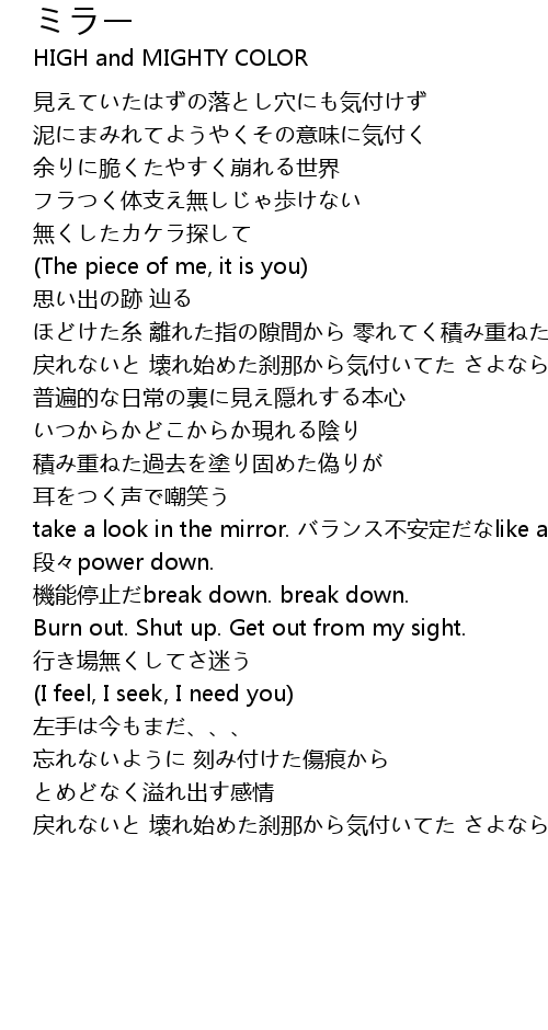 | 戻れないと 壊れ始めた刹那から気付いてた さよなら、、 | |