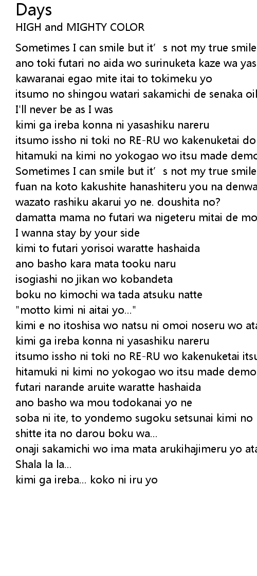 | 歌曲 | Days |
