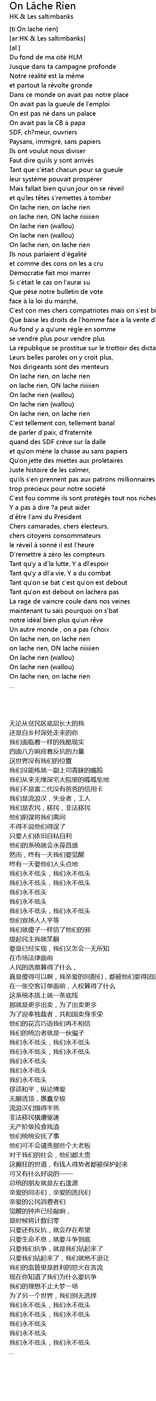 | [00:49.60] | On lache rien, on lache rien |