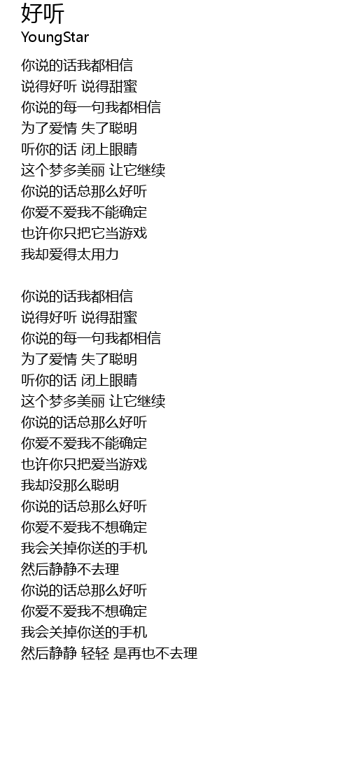 | nǐ shuō de měi yī jù wǒ dōu xiāng xìn | |