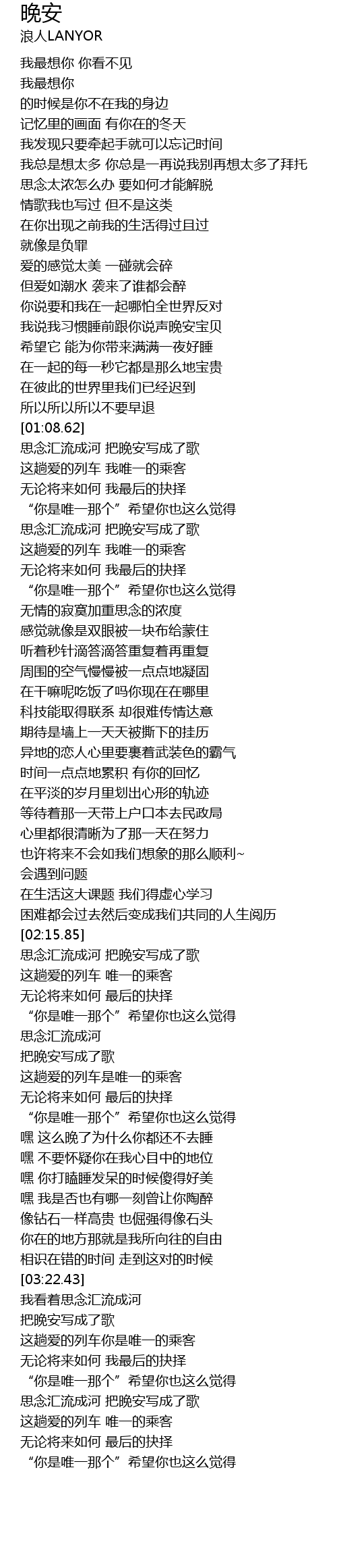 | [01:20.62] | 思念汇流成河 把晚安写成了歌 |