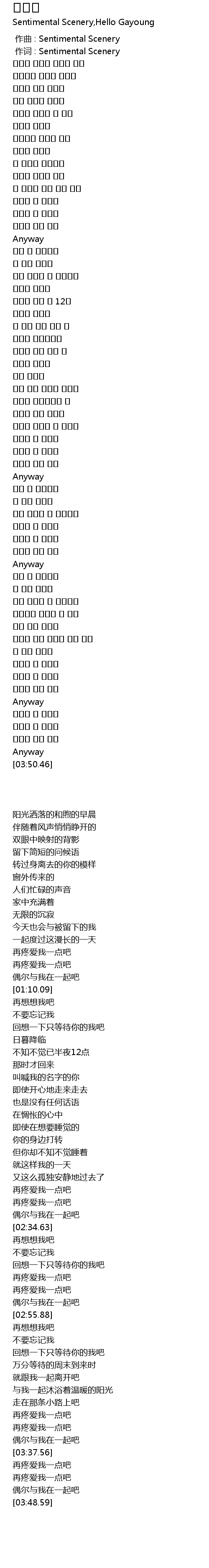 | [00:01.00] | 作词 : Sentimental Scenery |