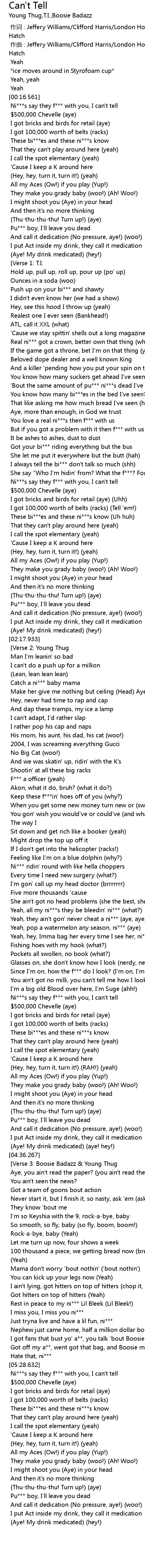 | [00:16.795] | Ni***s say they f*** with you, I can't tell |