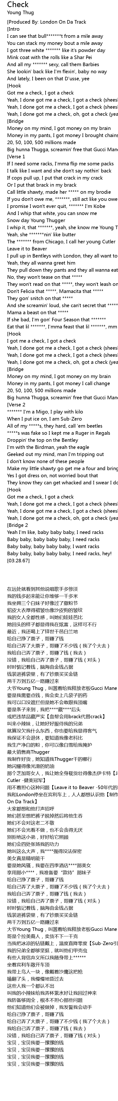 I got me a check, I got a check |