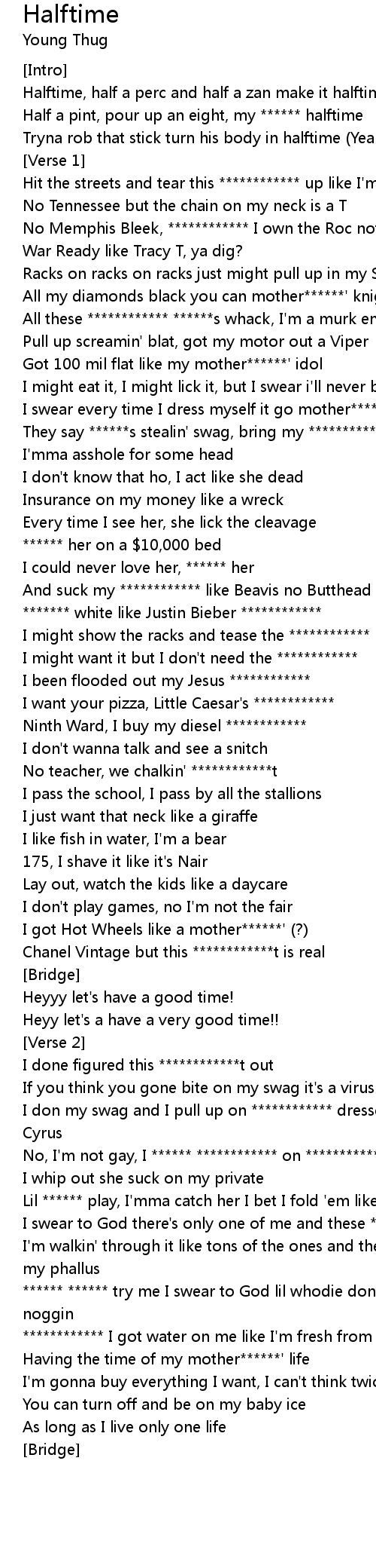 I'm walkin' through it like tons of the ones and these ************ grabbin on my phallus |