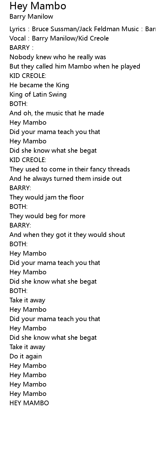 | Lyrics:Bruce Sussman/Jack Feldman Music:Barry Manilow/Tom Kelly | |