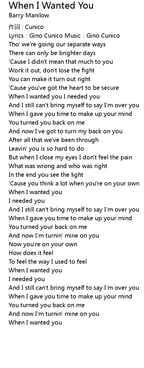 | 歌曲 | When I Wanted You |
