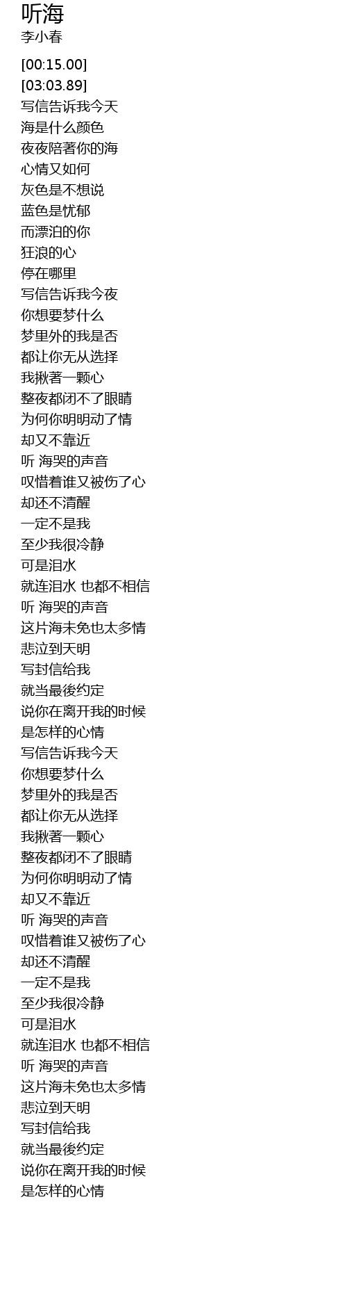 | [03:45.94] | tīng hǎi kū de shēng yīn |